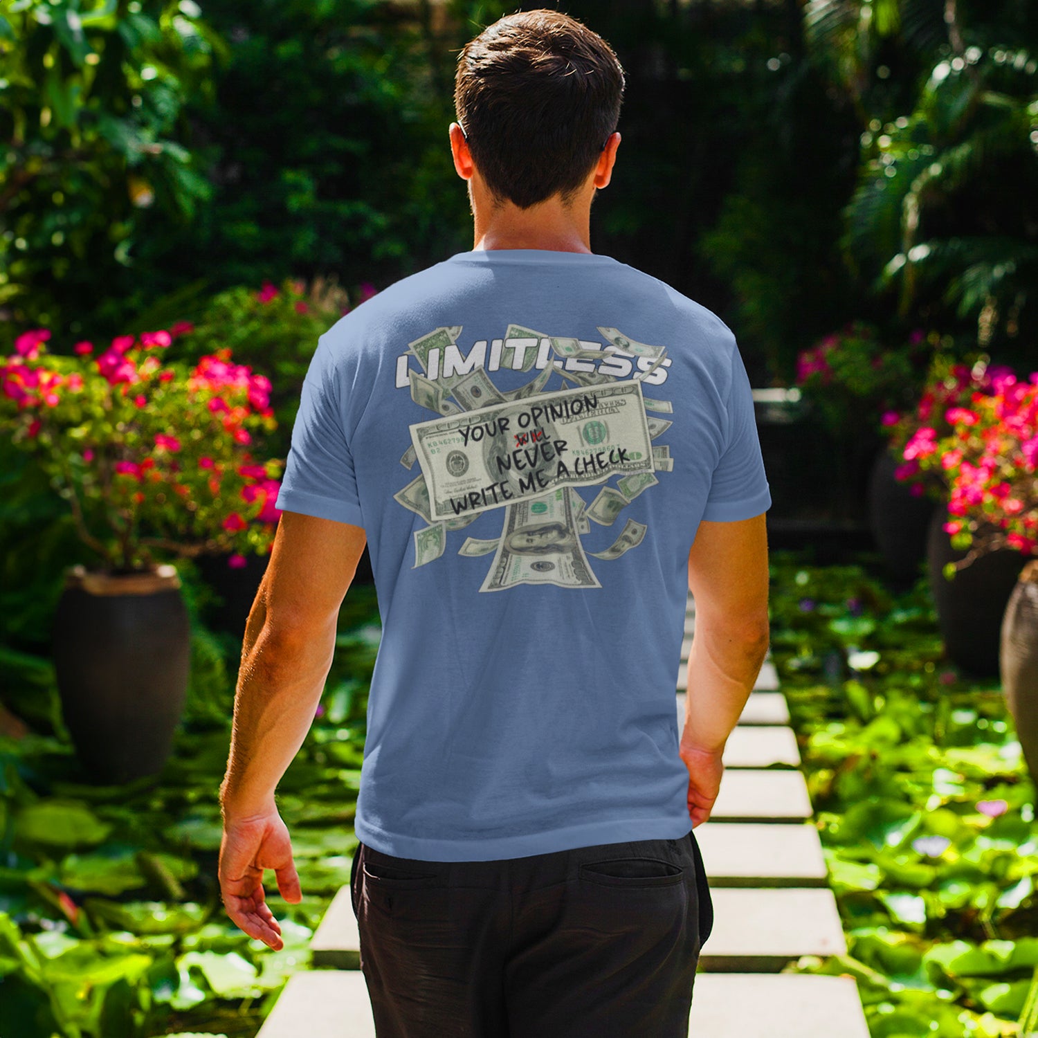 Design: The Check Tee is designed to remind you that opinions from others are useless if they are not pushing you towards your goal. Everyone has opinions, and none of them should affect how you perform. Just Win. That's all that matters.